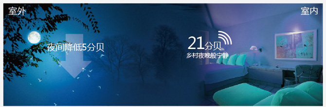 室内机最低运行噪音仅21dB,室外机同时具有夜间静音运行模式,双静音运行全力打造最宁静的生活空间。